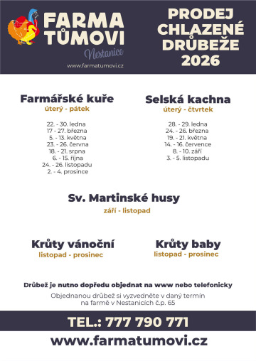 Jsme rodinná farma z Jižních Čech se sídlem v malé vesničce u Netolic v Nestanicích. Poctivému chovu drůbeže na maso se věnujeme přes 20 let a vždy jsme hledali nové cesty jak vyhovět našim stálým zákazníkům, kterým děkujeme za přízeň. Tak vznikl i tento web, na kterém si můžete pohodlně objednat chlazenou drůbež na daný termín